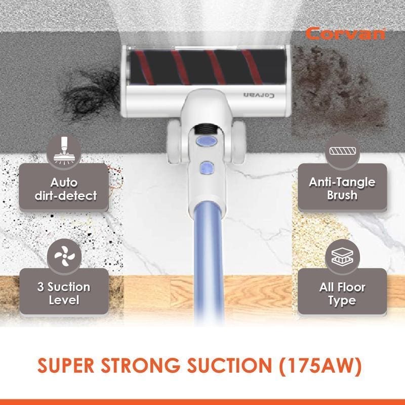 Corvan K9 Pro Anti-Tangle Cordless Vacuum Cleaner – Kuasa sedutan 175 AirWatts dengan teknologi anti-kusut revolusioner untuk pembersihan rumah Malaysia yang sempurna!