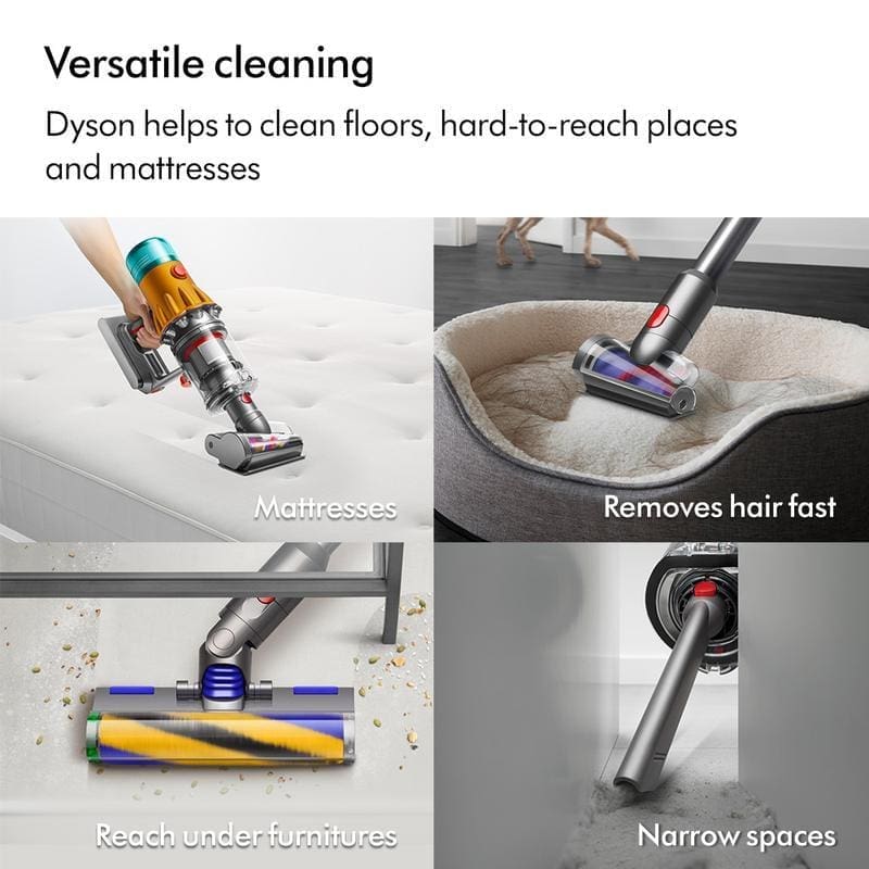 Dapatkan pengalaman pembersihan rumah yang lebih pintar dan berkesan dengan Dyson V12 Detect Slim Absolute. Pembersih vakum tanpa wayar ini dilengkapi dengan teknologi laser yang membolehkan anda melihat habuk halus yang tidak dapat dilihat mata kasar, memastikan setiap sudut rumah benar-benar bersih.