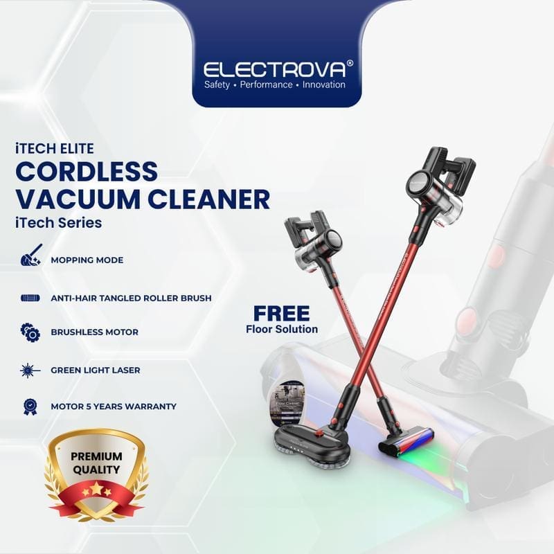 Jadikan kerja pembersihan rumah lebih mudah, cepat dan berkesan dengan Electrova iTech Elite Cordless Vacuum Cleaner. Pelaburan terbaik untuk kebersihan rumah keluarga anda!