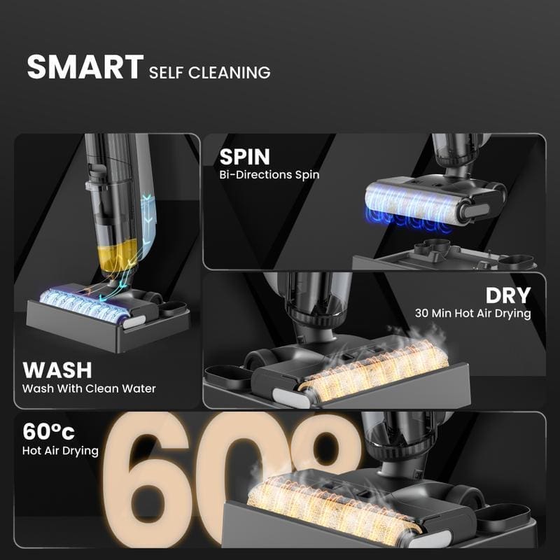 Teknologi Hot Air Drying 60°C – Ciri istimewa yang mengeringkan lantai dengan udara panas, memastikan lantai kering sepenuhnya dan mengelakkan kesan air yang tertinggal.