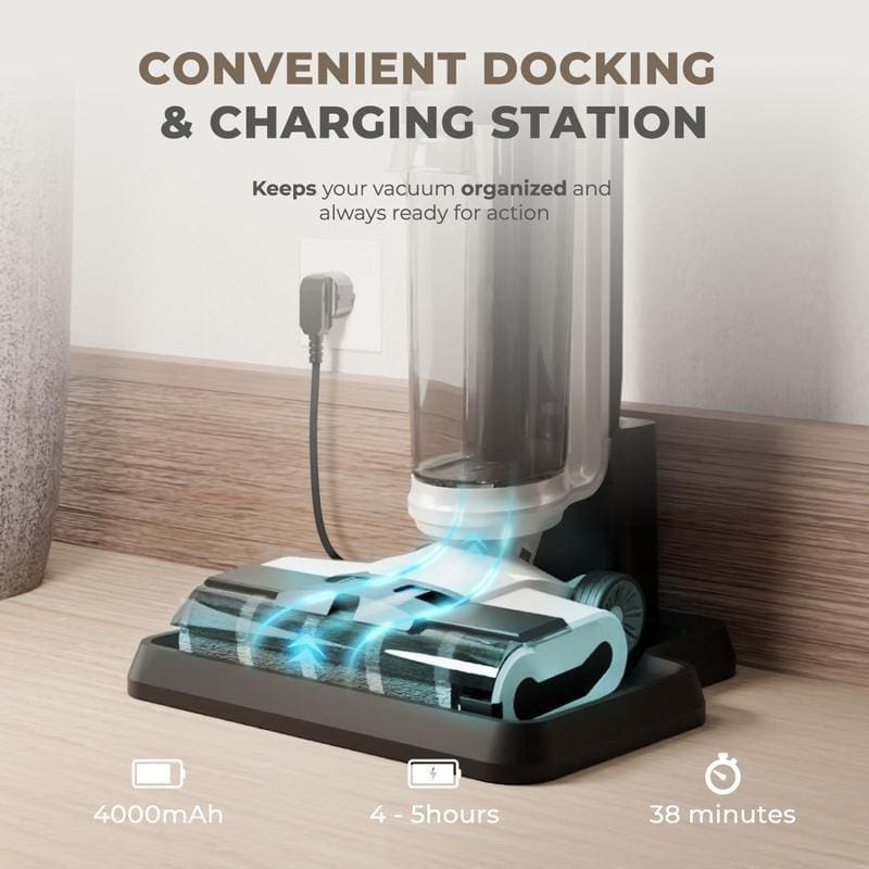 ✅ Motor BLDC 220W Yang Berkuasa – Sedutan kuat 20,000Pa yang mampu angkat habuk halus hingga serpihan besar dengan mudah