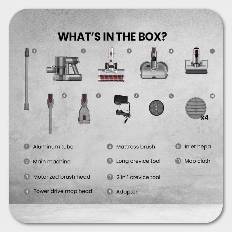 Dilengkapi dengan kuasa sedutan 30,000Pa yang mampu mengangkat habuk halus, kotoran degil, dan serpihan dari pelbagai permukaan. Motor BLDC 350W memberikan prestasi yang konsisten dan tahan lama, menjadikan setiap sesi pembersihan lebih berkesan.