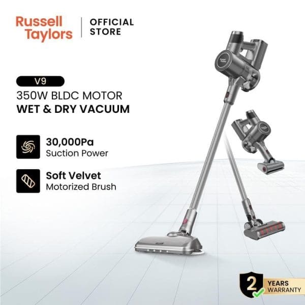 Russell Taylors V9 Cordless Vacuum Cleaner 2-in-1 dengan kuasa sedutan 30,000Pa – pembersihan menyeluruh tanpa wayar untuk rumah Malaysia yang bersih dan selesa!