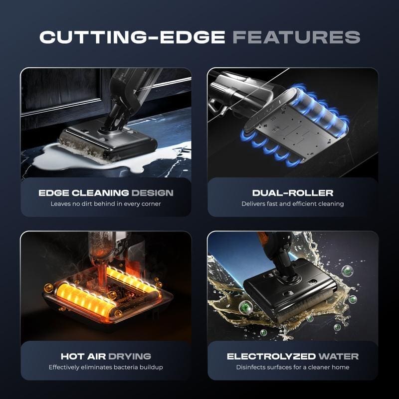 Lupakan zaman lama mengemas rumah dengan beberapa alat berbeza! Russell Taylors i4 adalah revolusi pembersihan rumah yang menggabungkan vacuum, mop, pembersih basah dan kering dalam satu mesin canggih. Dengan reka bentuk dual roller yang inovatif, mesin ini mampu menyelesaikan kerja pembersihan dalam satu lintasan sahaja.