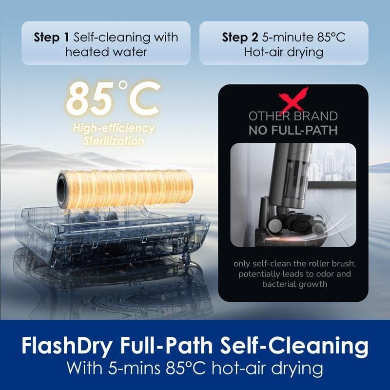 Pembersih lantai pintar Tineco Floor One S6 FlashDry yang menggabungkan teknologi basah & kering dengan sistem pengeringan pantas 85°C untuk hasil pembersihan yang sempurna dan lantai kering seerta-merta!