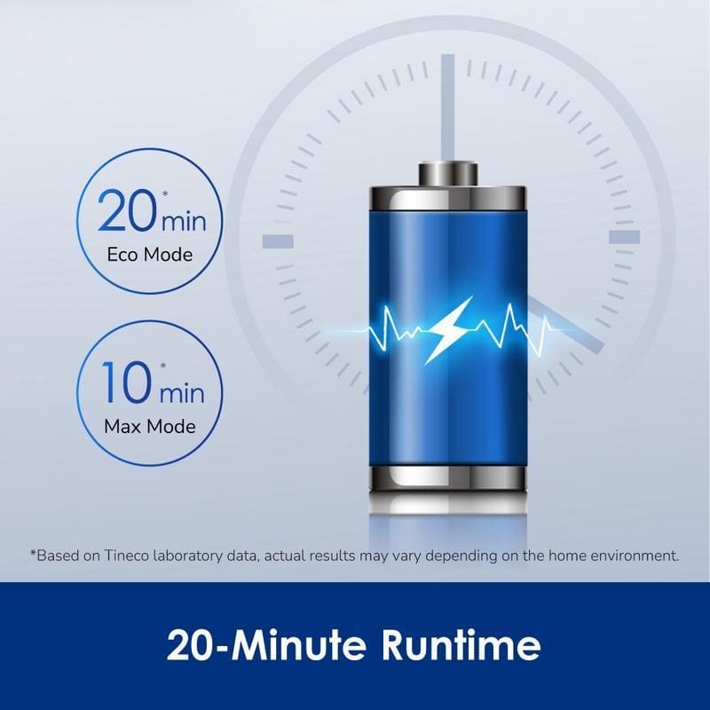 Bateri terbina dalam berkuasa tinggi memberikan masa operasi sehingga 20 minit – cukup untuk membersihkan seluruh rumah dalam satu penggunaan.