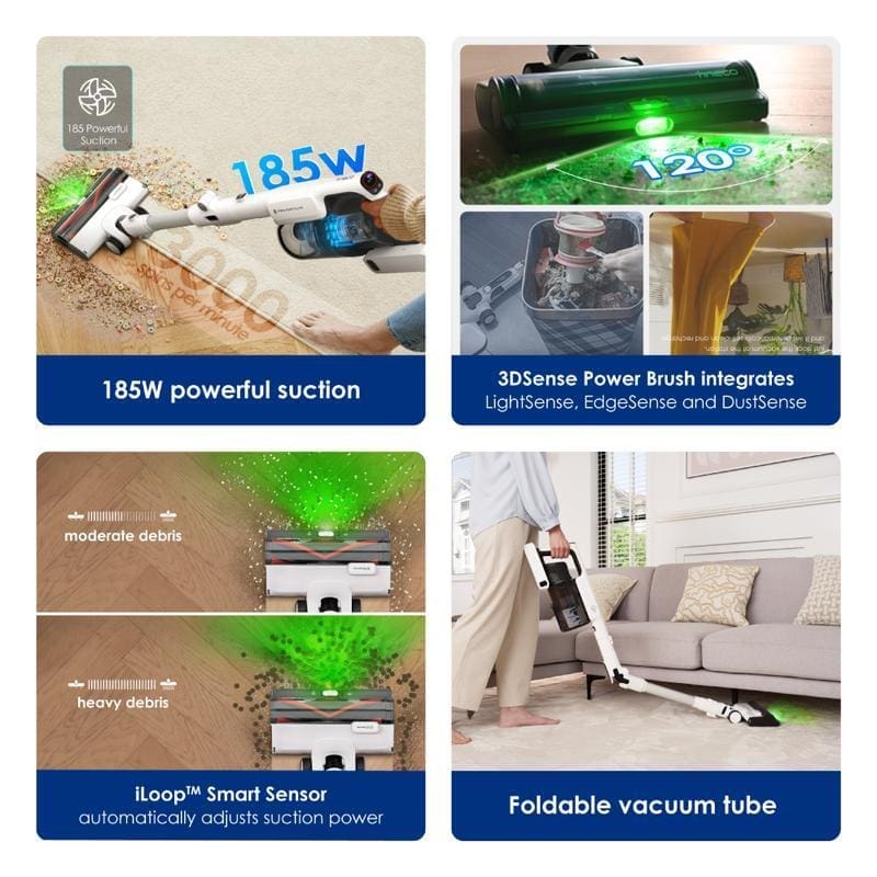Teknologi 3DSense Power Brush – Berus pintar yang mampu mengesan jenis kotoran dan menyesuaikan kuasa sedutan secara automatik untuk hasil pembersihan yang optimum.
