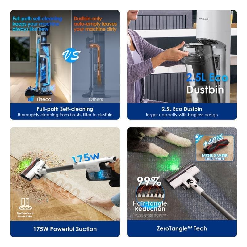 Tineco Pure One Station 5 Cordless Smart Vacuum | 2.5L Auto Dust Base | Full-Path Self-Clean | 175W Suction | ZeroTangle